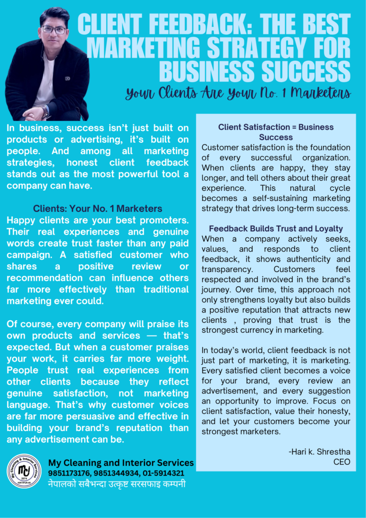 Client Feedback: The Best Marketing Strategy for Business SuccessBy My Cleaning / November 10, 2025 Your Clients Are Your No. 1 Marketers